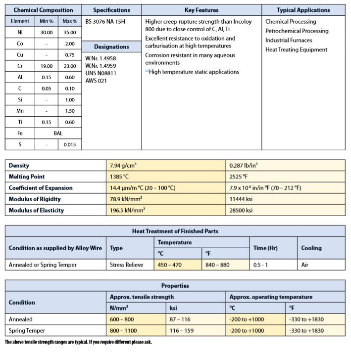 Sheet courtesy of ALLOY WIRE International
